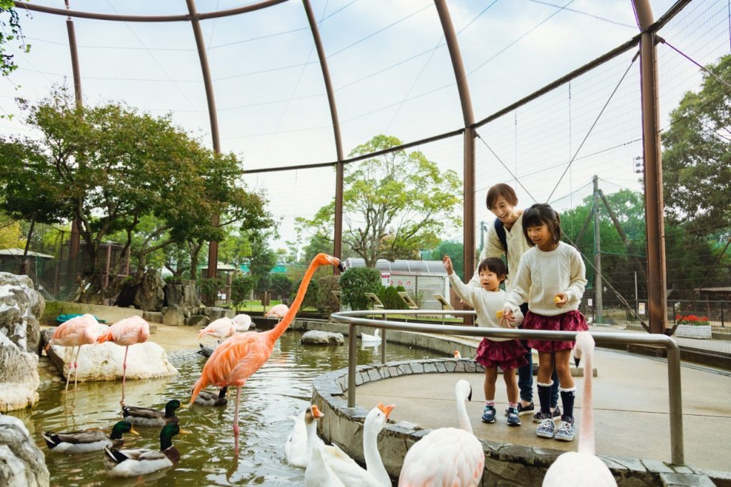 中央公園内の鳥類センターでは、クジャクを中心にタンチョウやフラミンゴなど約80種420羽の鳥たちが観察できます。また、観覧車やメリーゴーランドなどの遊具施設が充実し、夏には市民流水プールもオープン。家族で楽しめるスポットです。